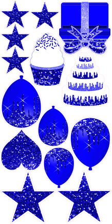 The Blue Sparkle HBD Flair Package has 14 Statement Pieces.