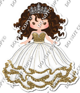 Girl in Dress Wearing Crown - White & Gold Dress $10.99