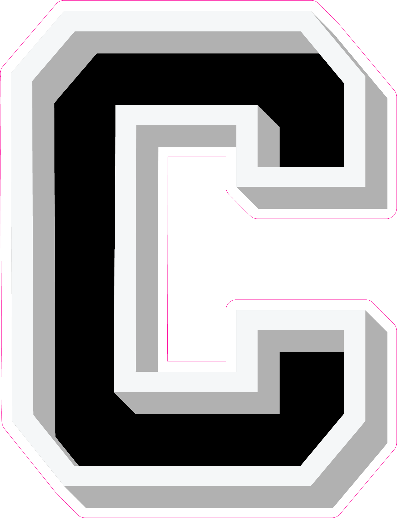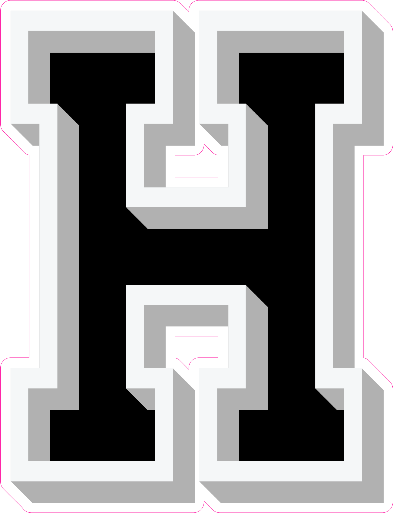 • All letters are 23.5 High with white borders.